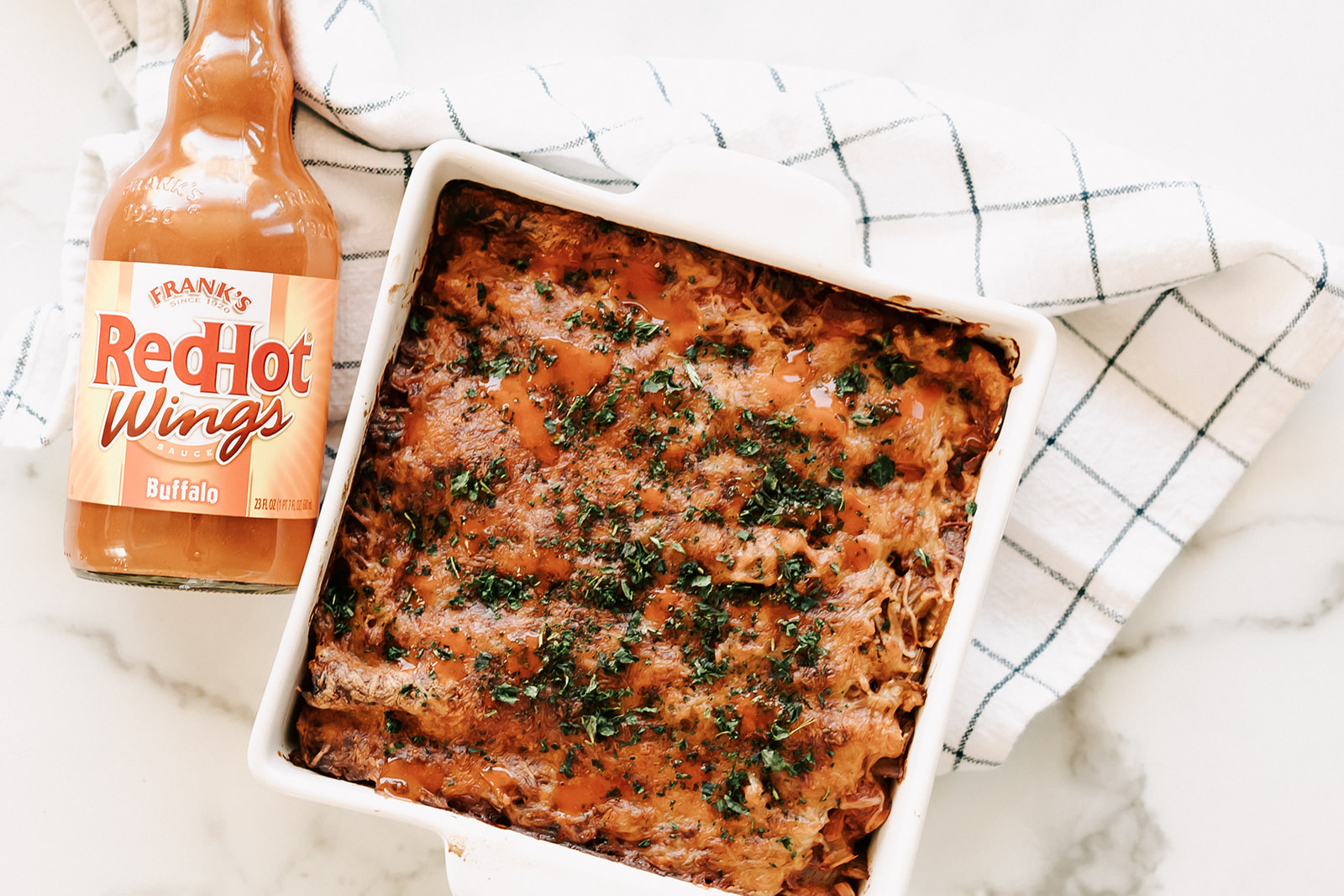 - This recipe sounds weird because it IS weird. Buffalo sauce + enchiladas shouldn’t work, but here we are, living our best chaotic life.